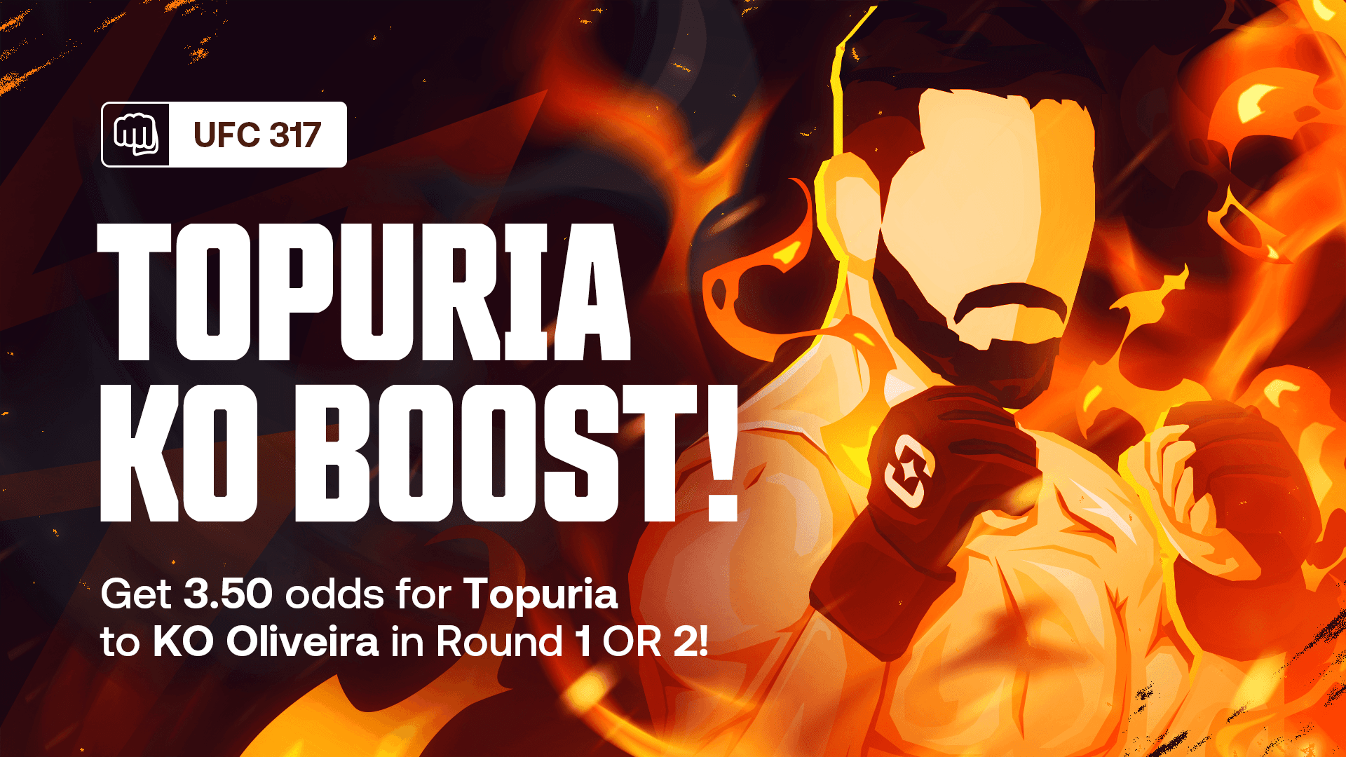 Get 3.50 odds for Topuria to Win by KO in Round 1 OR Round 2 at UFC 317!